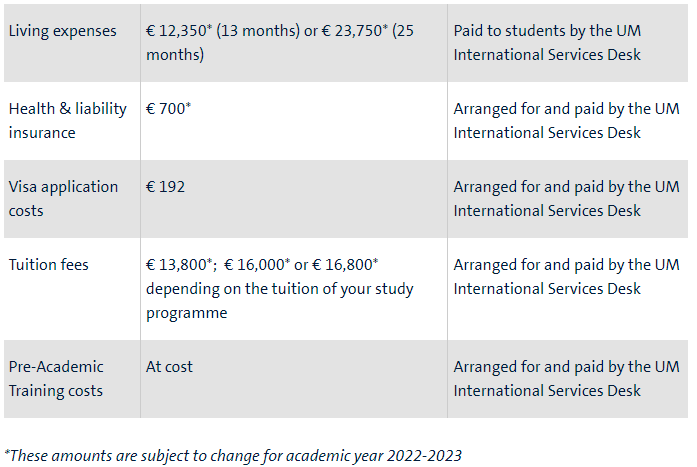 Maastricht University Scholarship for International Students is a fully-funded scholarship program under the High Potential Holland Scholarship and Holland Government Scholarship in Netherlands that will cover as;