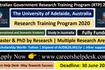 Australian Government Research Training Program (RTP) 2020 is inviting the applications from International as well as Domestic Students to apply in Research Training Program (RTP) degree (master or PhD) by research at Adelaide University Australia on fully funded Australian Government Scholarship 2020. Australian Government and Australian Government Research Training Program Read more