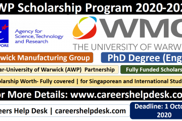 The University of Warwick is accepting the applications AWP Scholarship Program 2020-2021 under A*Star Fully Funded Scholarships. A*Start- University of Warwick (AWP) ENGD partnership 2020-2021 is fully funded AWP scholarships for international students to study in Singapore. Agency for Science, technology and Research Singapore is pleased to announce it’s a*Star Read more