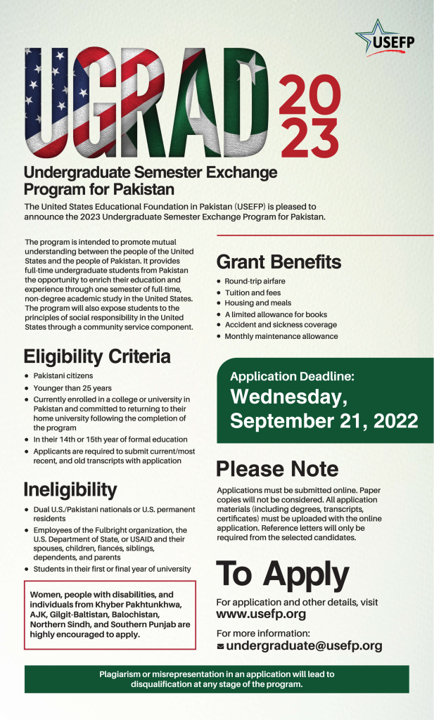 Through this user-friendly online portal, you can seamlessly submit your application for the USEFP Global Undergraduate Exchange Program for Pakistan. Don’t miss out on this chance to embark on an enriching journey of academic excellence and cross-cultural exchange.
